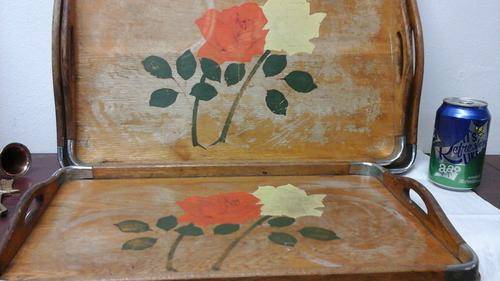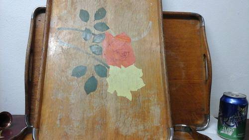 3 Gorgeous vintage painted wooden trays with steel joins on corners. They fit snugly into each other for easy storage.