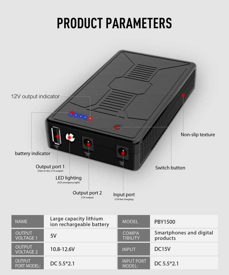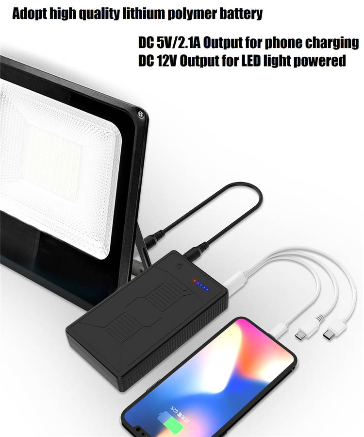 3-in-1 15000mAh 12V 5V Portable Charger Power Bank Built in LED Flashlight for CCTV Security Camera Mobile Phone