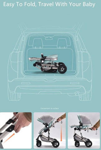 Functions as a Pram with a Detachable Bassinet and Car Seat