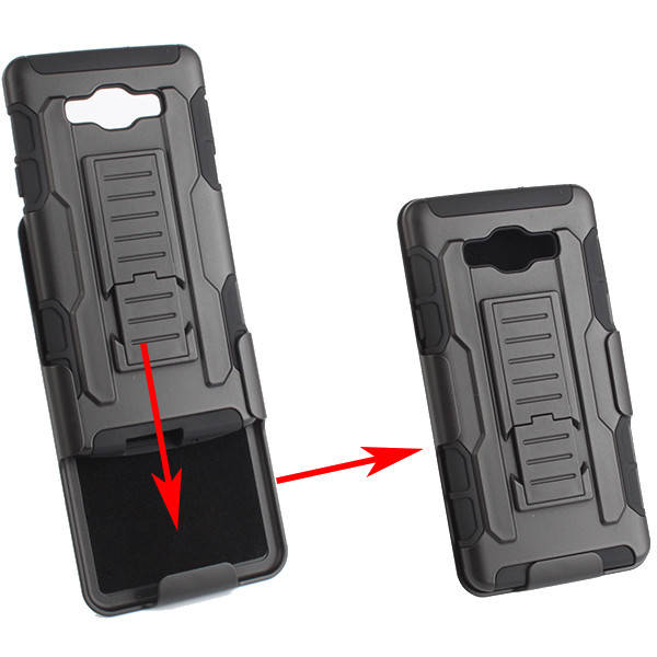 Description: Compatible Model: For Samsung Galaxy A7 Material: PC + Silicone Color: Black Feature: Easy to install and remove it. Prevent your phone from dust, bumps and scratches. The belt clip design makes it convenient for you to carry the phone. Can be folded as a holder while watching videos. Full-body design to provide excellent protection from scratches and bumps. Package Included: 1 x Case for Samsung Galaxy A7