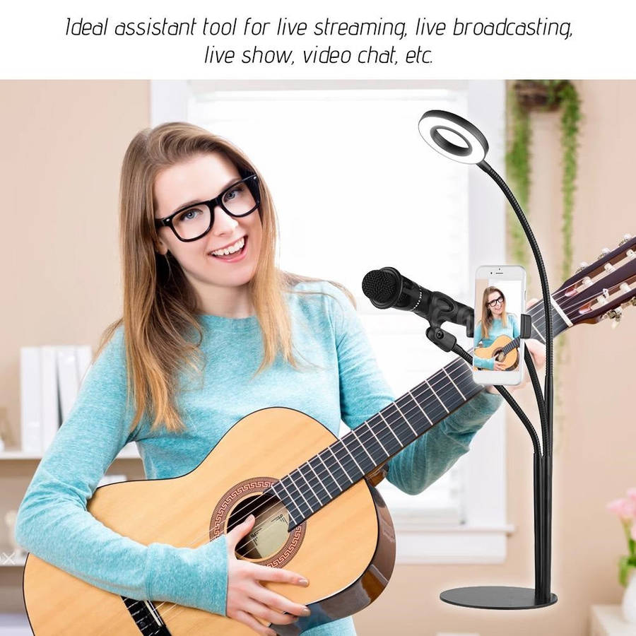 3 in 1 Multi-function stand: Selfie ring light, phone holder, microphone holder ( microphone not included )