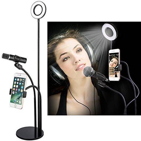 It comes complete with a a cell phone holder, a microphone holder and a spiral universal rod to change the angle to anywhere you want!