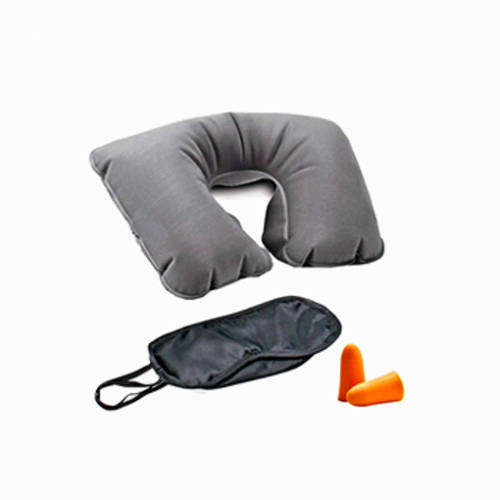 This travelling relax set has a U shape casual inflatable pillow, a blinder and a pair of soft anti-noise