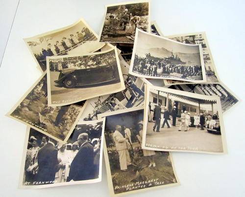 A Set of photographs of the Royal visit to South Africa in 1947. A Queen Elizabeth vintage tin and  an interesting Royal family tree