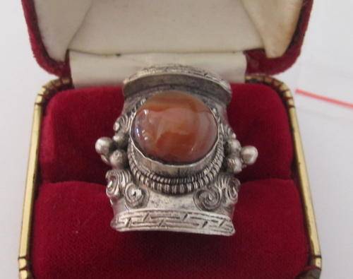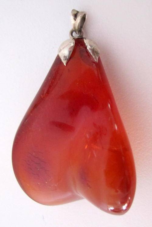The pendant below was bought as amber.I am almost sure it is amber but imitations can deceive.The pendant measures 4,5cm by 3cm. It is mounted on silver. The whooping ring measures 3,4cm by 3,8cm and is either plate or low grade Eastern silver.The large pendant is plated.It measures 7cm in diameter.