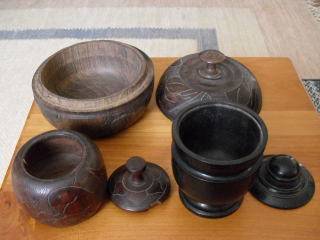 THESE ARE 3 LOVELY CARVED WOODEN TABACCO JARS ...