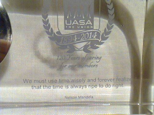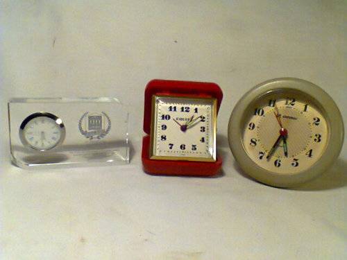 An Attractive and versatile Paper Weight Quartz UASA The Union motif with Nelson Mandela Quotation on the clock. It is running/working please look at the dial in the photo's.The grey Safeway Alarm clock is working. The Red Travel Clock needs TLC.