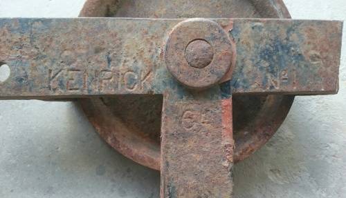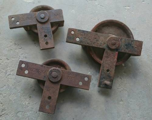 3 Old steel KENRICK pulley type wheels as per attached photo