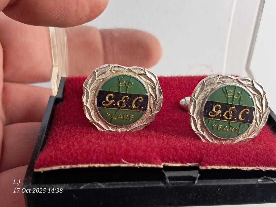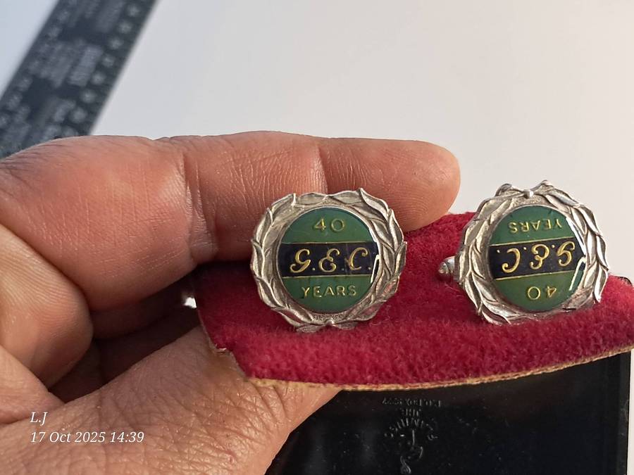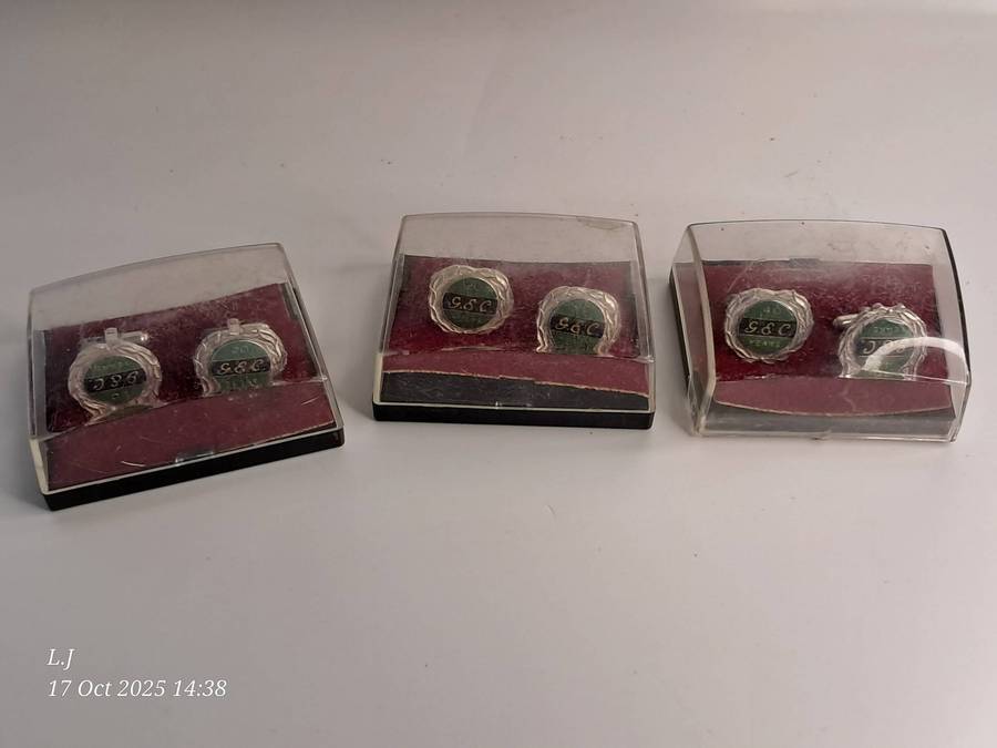 3 Pairs of vintage G.E.C Long service Cuff-links still in original box.