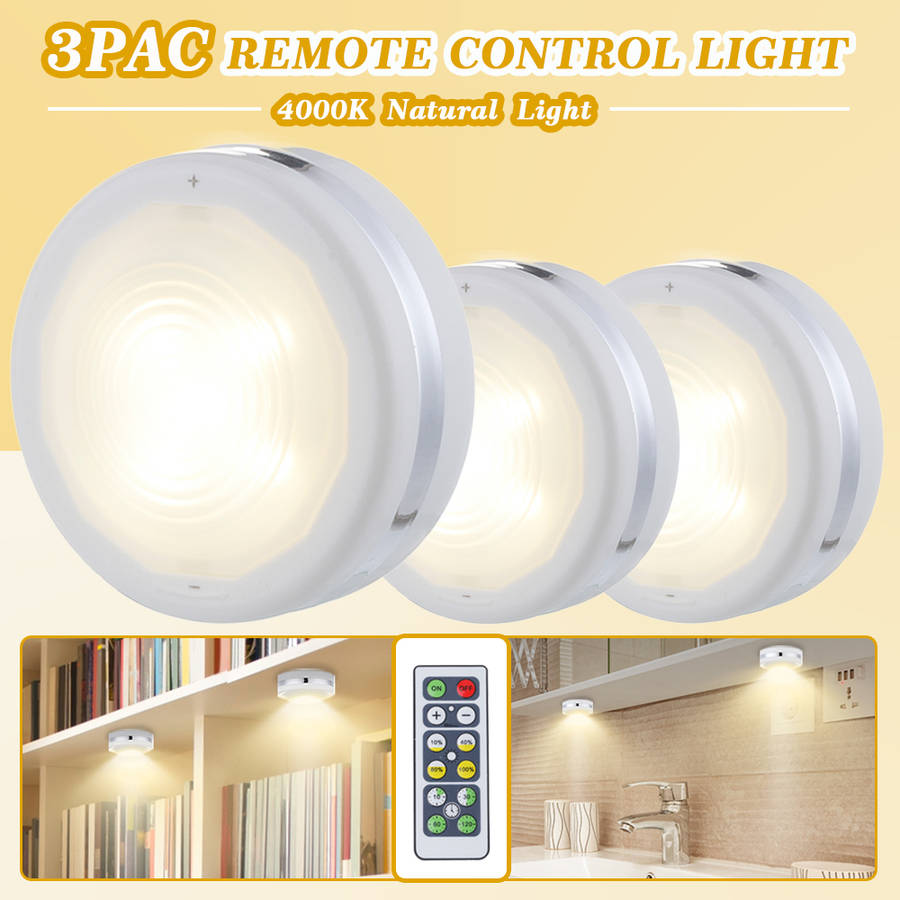 Wireless LED Puck Lights, Closet Lights with Remote Control, Battery Powered Dimmable Kitchen Under Cabinet Lighting, 4000K Natural Light