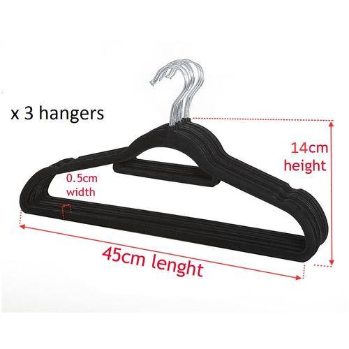 3 Piece x Non-Slip Bar Flocked Velvet Hangers Coat Clothes Dress Trousers Travel