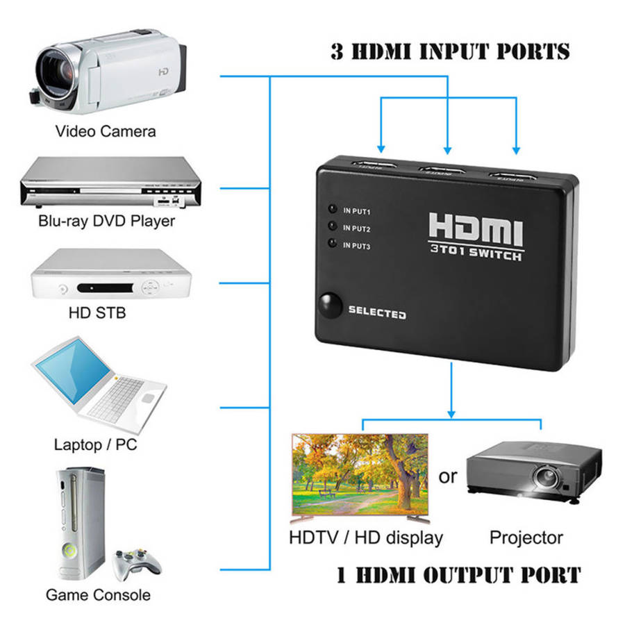 - Connect up to 3 HDMI devices to just 1 HDMI port on your HDTV/monitor.