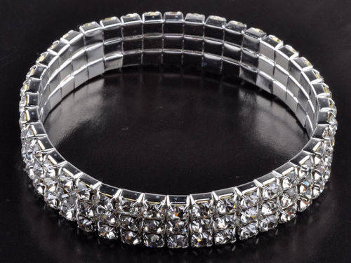 3 ROWS OF SPARKLING RHINESTONES ON STRETCH BRACELET BRIDAL JEWELLERY