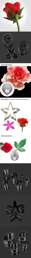 3 Set 11Pcs Rose Cookie Cutter Stainless Steel Cake Mold Petal Calyx Leaf Fondant Mould