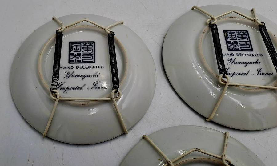 POSTAGE WILL BE COMBINED: Collection in Mondeor Johannesburg:Tip: To save on shipping -Buy more than one of My 2000+ Items3 Small 10,2cm Vintage Hand Decorated Yamaguchi Imperial Imari wall Plates with HangersMade in Japan10,2cm in DiameterNo Chips or cracks-Please see ALL IMAGES - Multiple Images Uploaded - The pictures of the items form part of the descriptionDue to the age of many of our Items there might be some Flaws and Imperfections.Colours depicted in the photos of items may differ from the actual colour of the items due to many factors including the light and the time of day that the photos are taken.I always try to get the description 100% correct with some research but can get it wrong sometimes ..i am not an expert. |