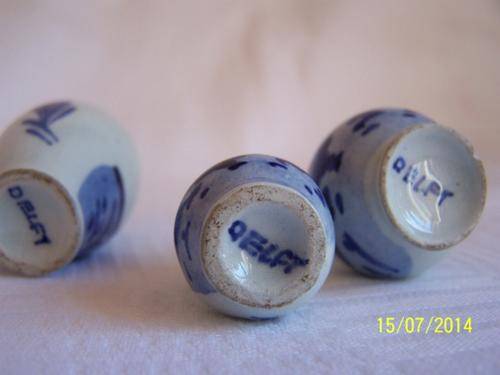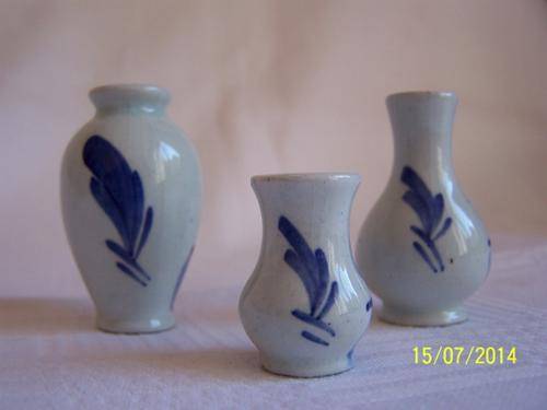 Cute vases as per photos. The middle one has a small chip on the base. The small one has a small chip on rim.