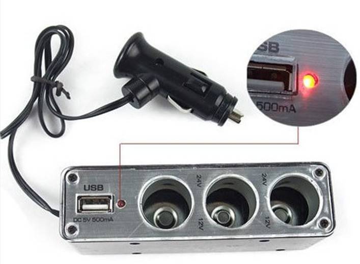 3 Way Car Cigarette Lighter Socket with Usb Port