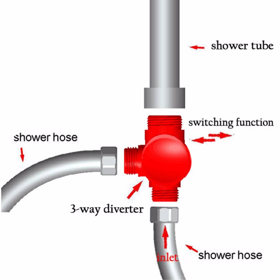 3 Way Shower Diverter Chrome G1/2 Inch T-Adapter Shower Components Adjustable Valve Adapter