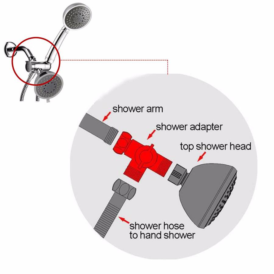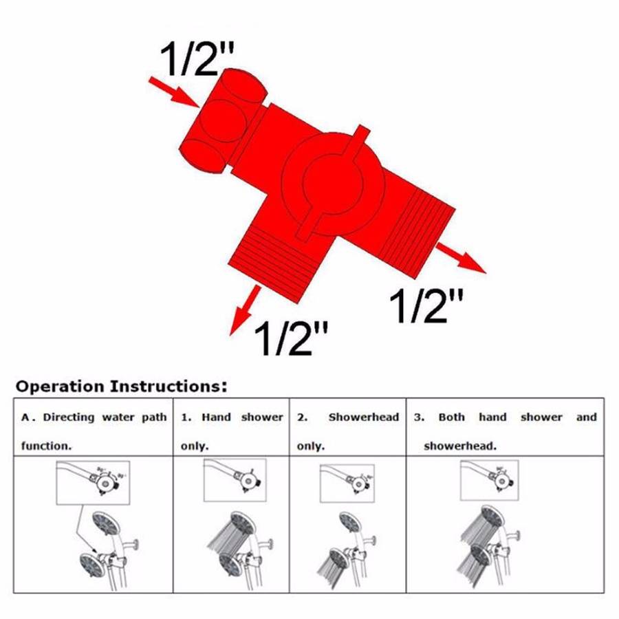 3-Way Shower Diverter Valve Convertor Mount Combo Shower Arm Handheld Fixed Bra