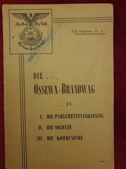 1) Die Ossewa-Brandwag publikasie Nr 3, April 1943, 24bl, naam voorop.