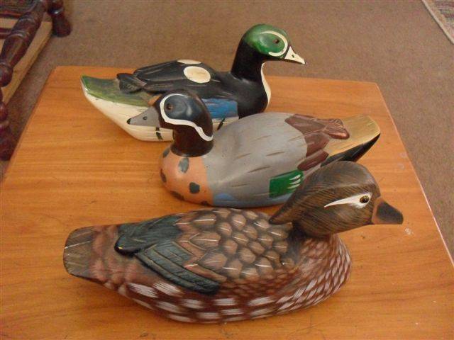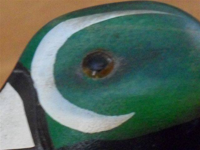 3 PRETTY HAND PAINTED WOODEN DUCKS WITH GLASS EYES...