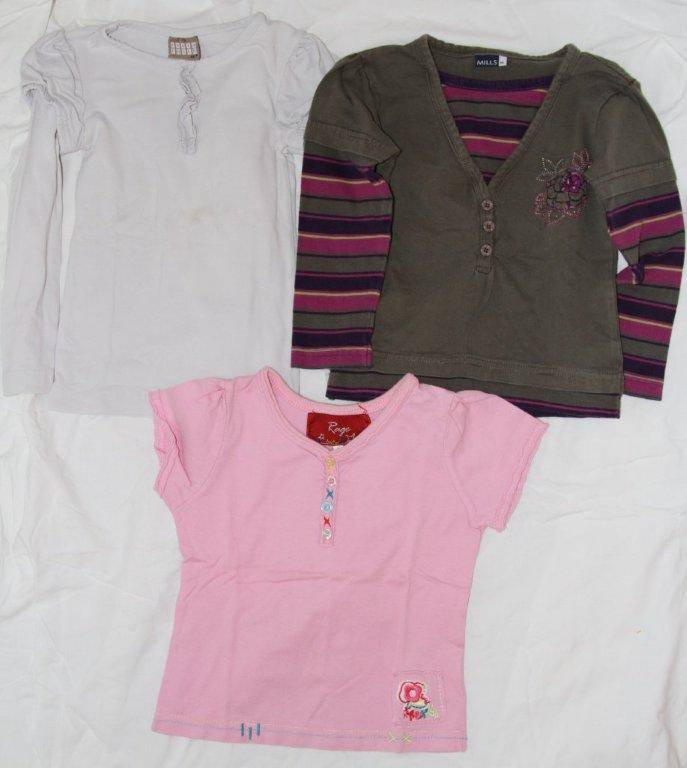 Cream Pumpkin Patch long sleeved top - 3 years; Olive & Purple embroidered long sleeved top Mills - fits 2 years; pink Rage T-shirt - fits 2 years