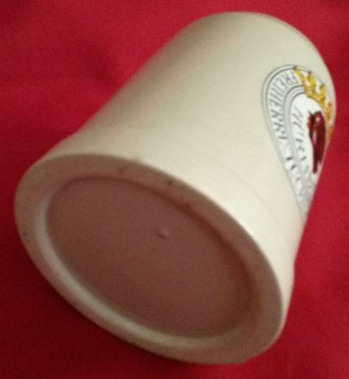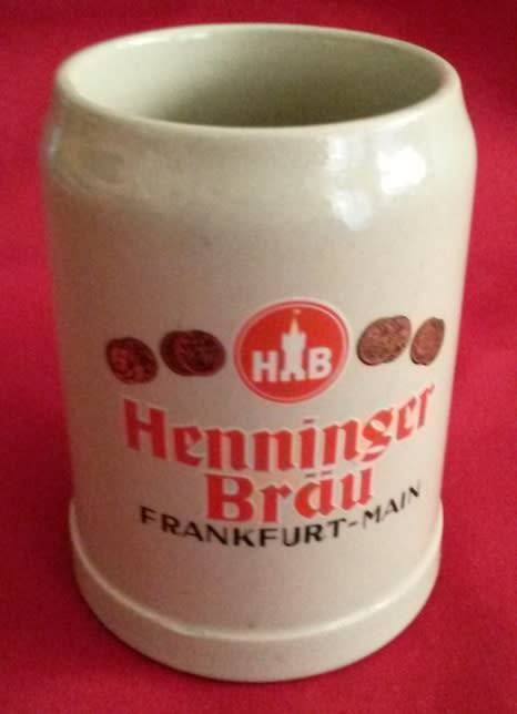 The steins (0,5lt each) are in very good used condition, with no chips or cracks, except for the "Henninger Brau" one which has a hairline crack. Would still make a nice display item in a man cave. All manufactured in Germany. The mugs are each about 13,5cm high with a diameter of about 10,2cm at the bottom. Other: Slight colour variations possible between picture and real item. Please regard pictures as part of the description of the item.