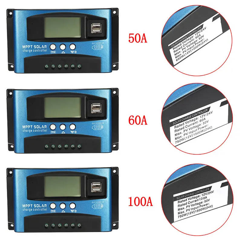 30/40/50/60/100A MPPT Solar Controller LCD Solar Charge Controller Accuracy Dual USB Solar Panel Bat