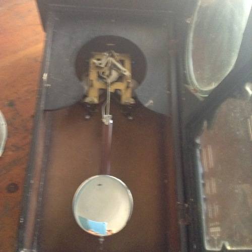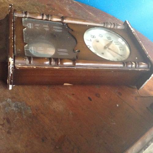 Windup wall clock spares not sure f it works no key glass all in tact pendulum here case needs tlc