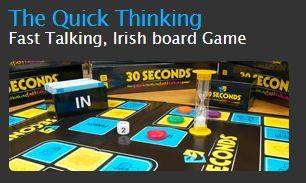 SUITABLE FOR AGES 15+ AND FOR 3 OR MORE PLAYERS,30 SECONDS IS A QUICK THINKING FAST TALKING DESCRIPTION IRISH BOARD GAME SUITABLE FOR ANY GROUP,PARTY OR FAMILY,BIG OR SMALL! GET READY FOR SOME LIVELY BANTER AND GREAT CRAIC AS YOU RACE TO GET AROUND THE BOARD AND BECOME THE QUICKEST THINKING FASTEST TALKERS AT YOUR PARTY.