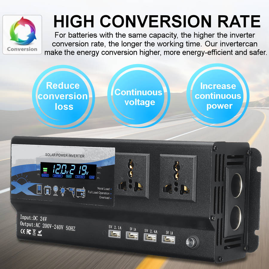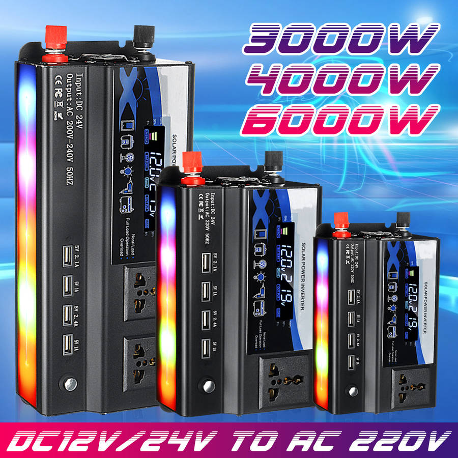 3000/4000/6000W Car Power Inverter DC 12V/24V To AC 220V 4USB Outle... (VOLTAGE: 24V | POWER: 4000W)