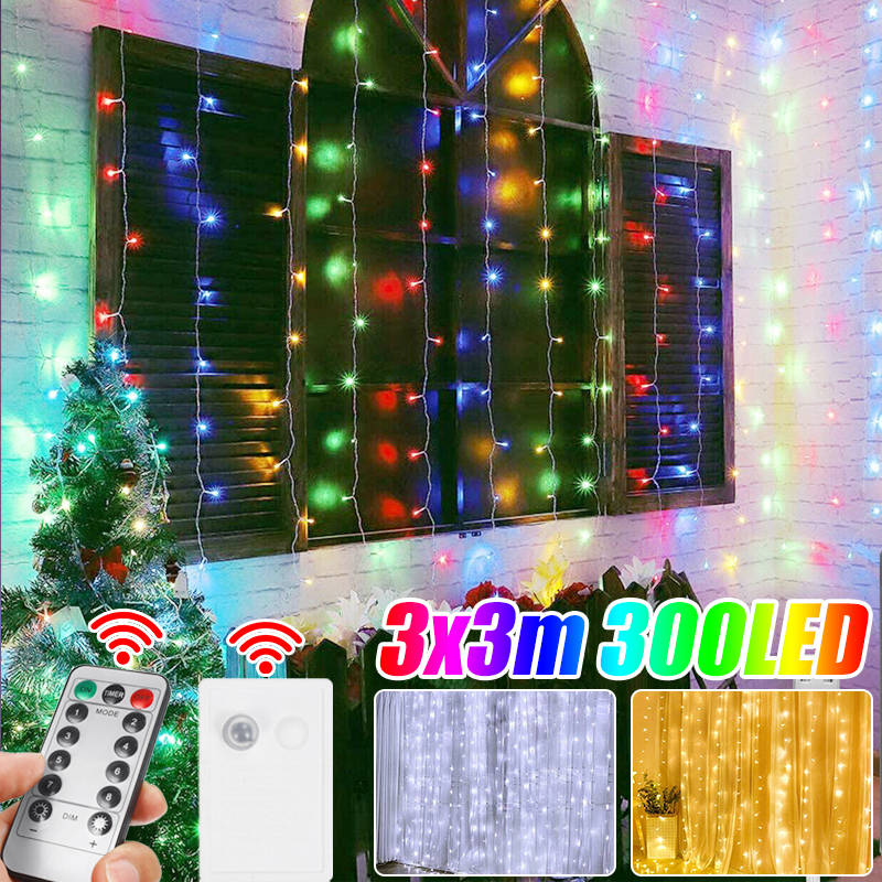 300LED 3x3m Curtain Light String IP65 Festival Decor Fair... (PLUG: 220VEUPLUG | LIGHT COLOR: WHITE)