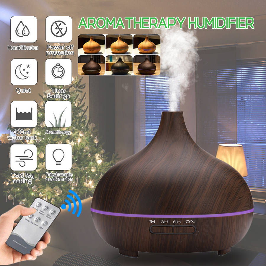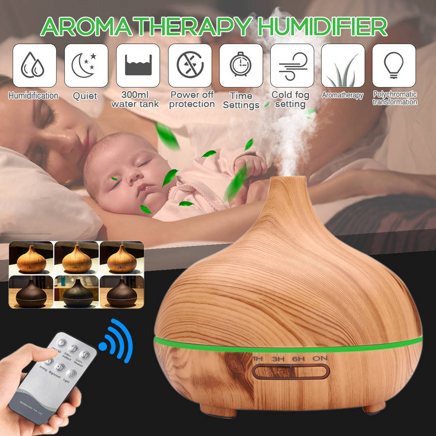 300ML Essential Diffuser Aromatherapy LED Ultr... (COLOR.: LIGHTWOODGRAIN | TYPE: WITHREMOTECONTROL)