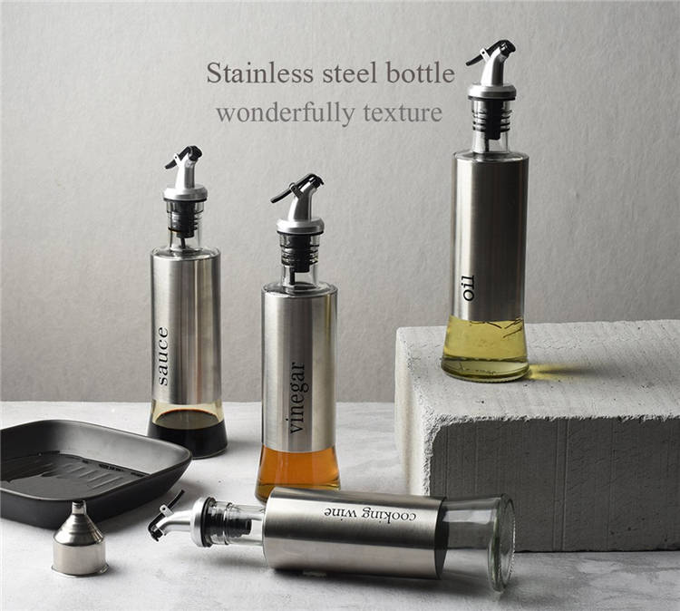 KCASA 300ML Olive Oil Dispenser Bottle with Funnel Stainless Steel Oil Pourer Dispensing Bottles Oil Vinegar Sauce Bottle