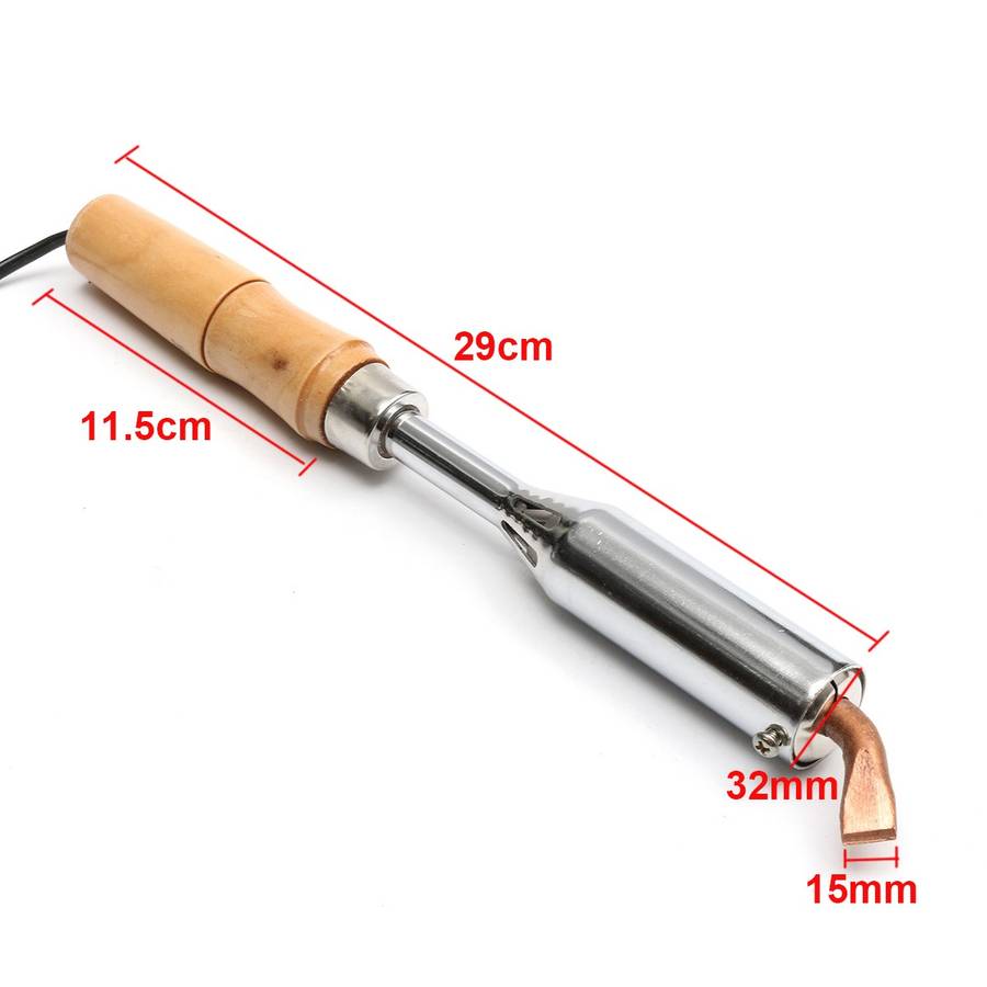 Specification : Material: Iron Chisel Point tip: Copper handle: Wooden Input voltage: AC 220V Power: 300W Temperature range: 450-600a Soldering iron Length: 32cm Chisel Point tip: 20mm Cable length: 120cm Uses: electronic maintenance production Net weight: about 0.482Kg