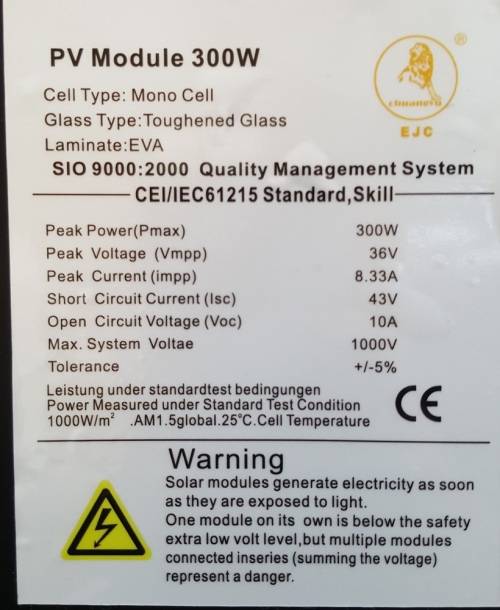 300W Solar panel with battery connect for easy use. Multi-purpose Solar panel for home, camping or business use. See images Below for Solar Panel Specifications and Dimensions.