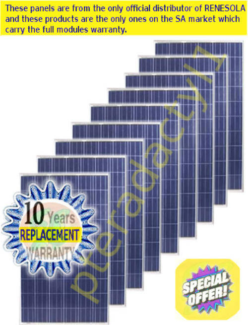 POLYCRYSTALLINE RENESOLA VIRTUS II 300Wp SOLAR PANELS x9 units (Job lot of 1 pallet plus 1 panel).