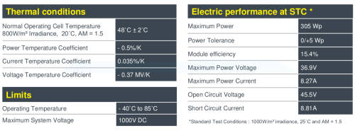 305w SOLAR PANEL POLYCRYSTALLINE ENERSOL (36v) ex CPT/JHB/BFN
