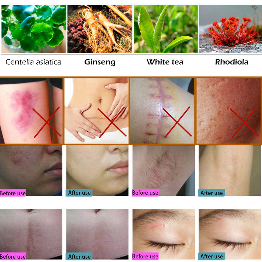 Use the advanced scar and acne mark removal an repairing technology,choose asiaticoside,heparin,allantoin,carbomer and other raw materials for processing.It is easy to penetrate e cortex,soften the scar tissue,promote the skin's natural renewal and healing,quickly heal the scars,regulate the oil secretion of the skin,prevent the redness and swelling caused by the sun as well as scar inflammation and hardening,and shorten the scabbing time.Besides,it also has the anti-inflammatory,bacteria elimination,beauty and skin nourishing,scar and acne mark removal,and makes the skin smooth,soft,beautiful and texture.