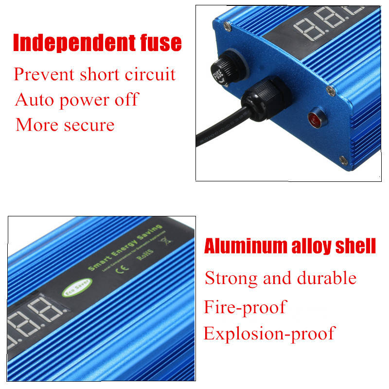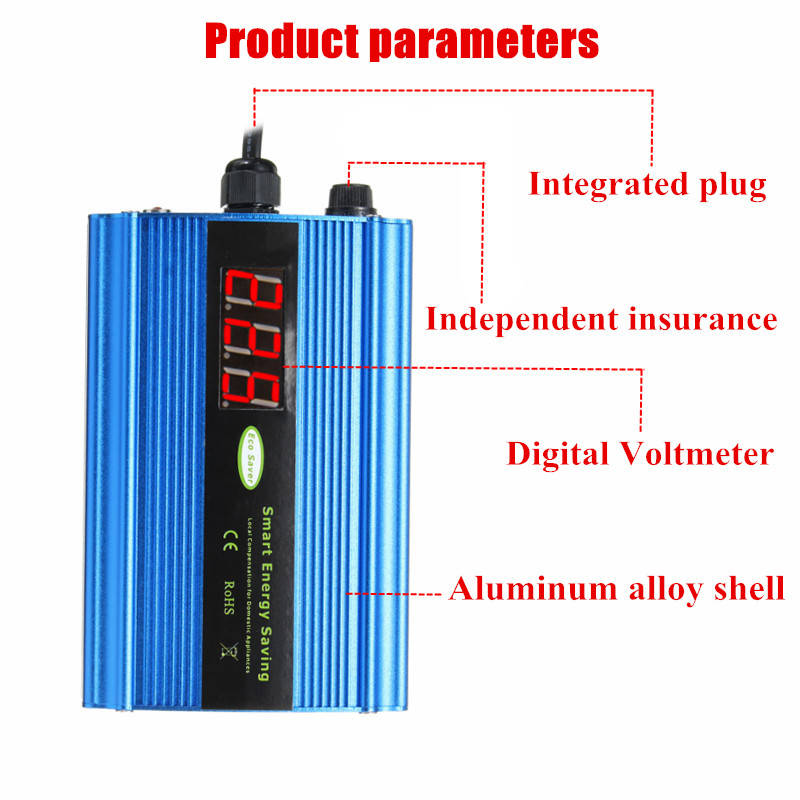 Features: --No need electric circuit refitting, easy installation. --Small in size, low cost, plug in and play. --Reactive repower compensation on the spot, improves power factor. --Reduce the abnormal heat for electric equipment. --Protect device from over loading and over voltage situation. --Prolongs the working time of devices by more than 30%, low down the repairing cost. --Wide use range for all inductive electric devices. --Made with high components, up to 2-5 years working time. --Fancy design, stainless.