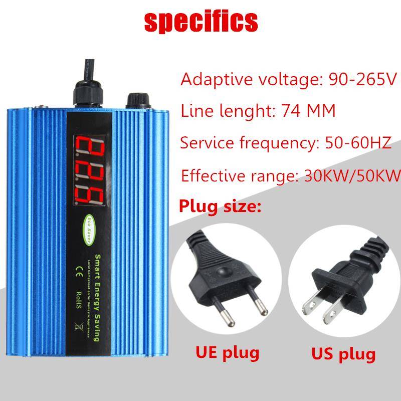 Specification: --Adaptive voltage: 90-265V --Line lenght: 74 MM --Service frequency: 50-60HZ --Effective range: 50KW --Plug size: US Plug --Energy saving performance: Buffer energy saving, Buffer energy saving, Clean energy saving, Incease of power.