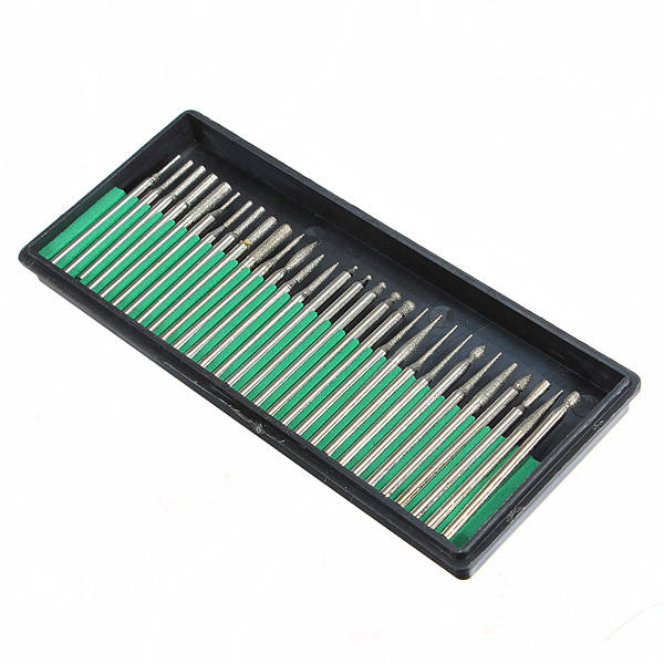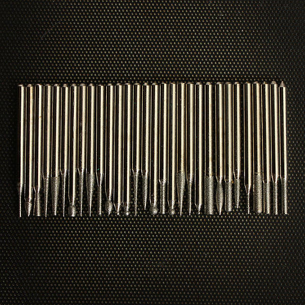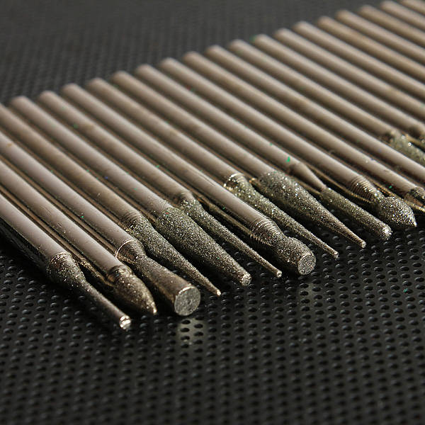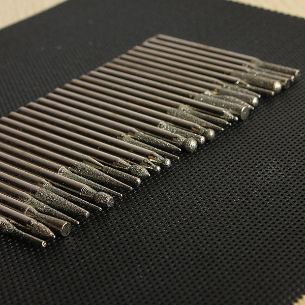 Description :30pcs 3MM Titanium Diamond Burrs Bur Bit Set Dremel Rotary Tool SetThis diamond burr set is designed to be used with high speed rotary tools, grinders and drills. If you're a DIY enthusiast or hobbyist or craft fan, it may give your rotary tool even more functionality with this set of diamond burrs.