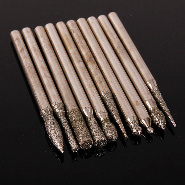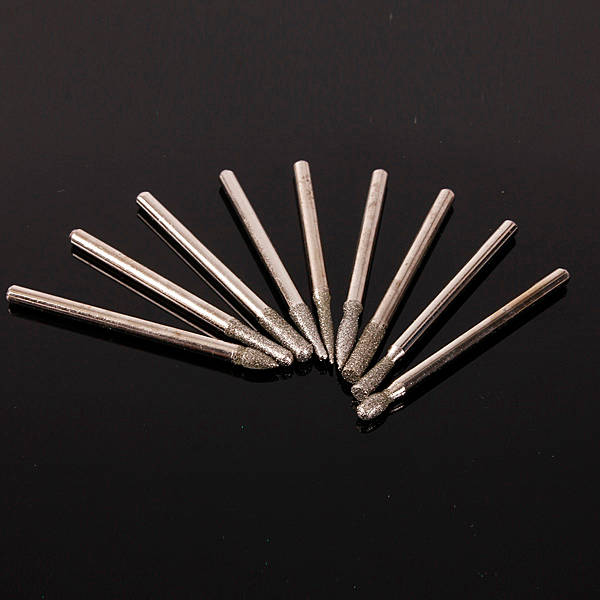 Description: 30pcs Diamond Burr Glass Drill Bits For Engraving Rotary Tool Set 3mm Shanks Features: New one box set of 30 pieces diamond coated burrs/pointed heads in box They will fit your hand drill for drilling glass, shells, tile and stone. Overall length: 45mm Shank diameter : 3mm Suitable for glass, marble, rock or jewelry, etc. Package Included: 1x Set(30pcs) Diamond Burrs
