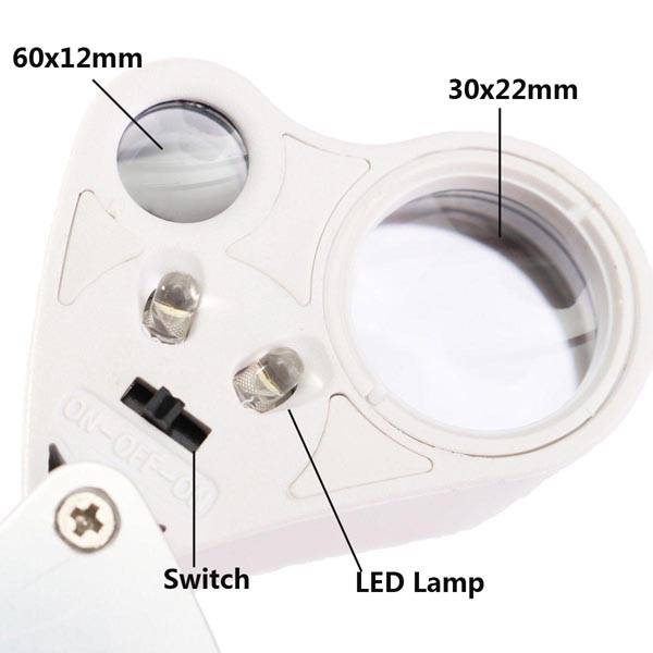 30X 60X Glass Magnifying MagnifierTools Eye Jewelry Loop Lens With LED Light