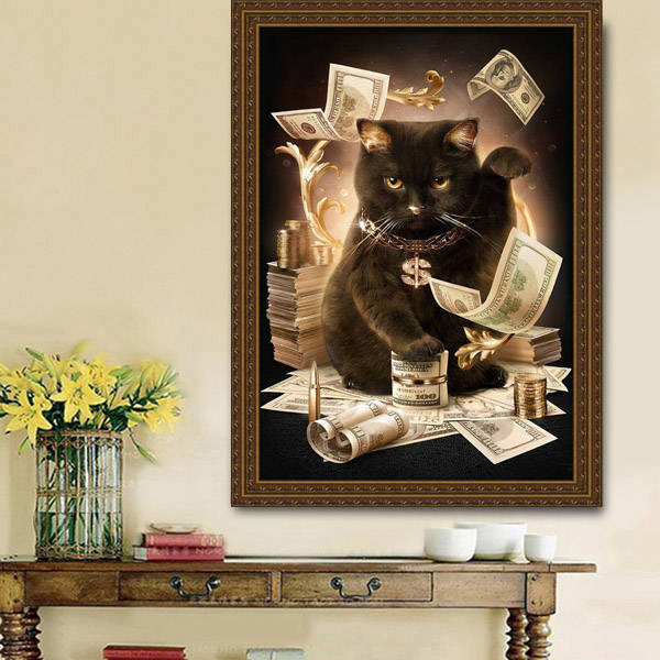 Specification: Size: 30x40cm / 11.81x15.79" Cloth fabric: canva Rhinestone material: resin Glue: green oil-based glue Pattern: Plutus Cat Package Include: 1 X Canva 1 X Tweezer or Pasting Pen (random) 1 X Tray 1 X Pack of Bag Corresponding Rhinestones Note: The pictures on the website are effect pictures, not real size. The diamond painting is not ready-made. You need to finish it by yourself.