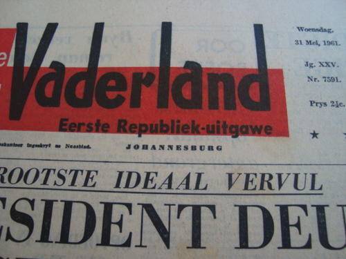 31 MEI 1961 DIE VADERLAND ORIGINAL NEWSPAPER