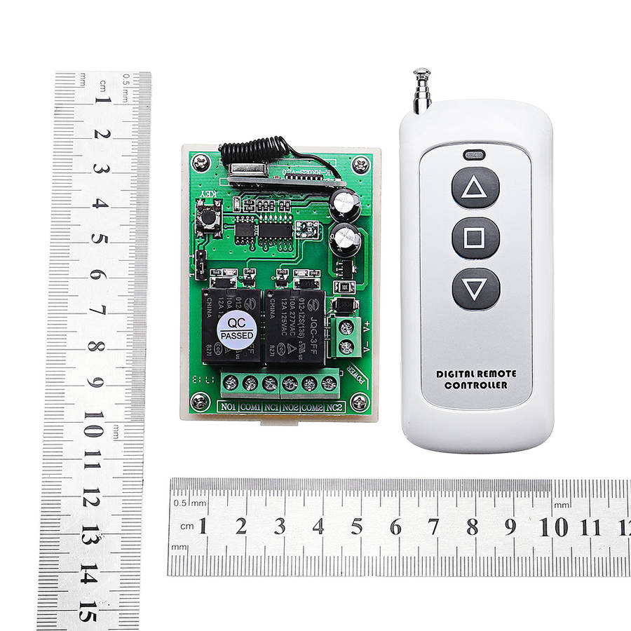 Feature: 1. Working voltage: DC12V 2. Quiescent current: a8mA single working current a40mA, two working current (self-locking) a80mA 3. Working temperature: -10ᆪC to +60ᆪC 4. Receive sensitivity: a-105dBm 5. Operating frequency: 315MHz 6. Output voltage: AC, DC optional 7. Output current: a10A 8. Size: 72 x 52 x 26mm