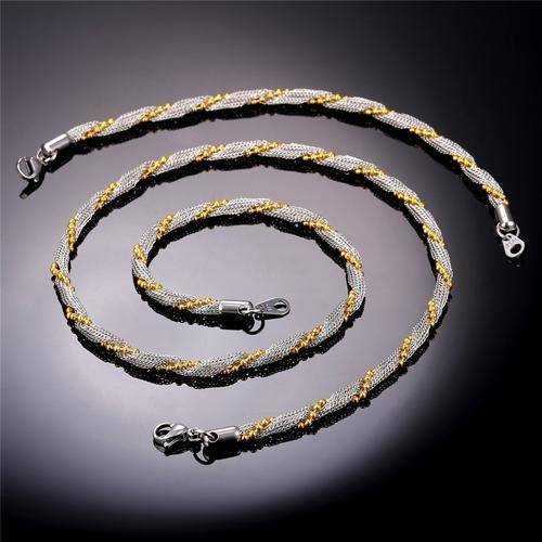316L Stamped Stainless Steel Two-tone Gold Filled Rope Chain Necklace & Bracelet Set (Free Gift Box)