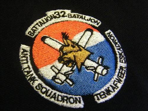The 32 Battalion Anti – Tank Squadron existed from 1986 – 1989 The Commander for most of this period was Kmdt. Hannes Nortman ( Major ). Nortman received the Honoris Crux for bravery and 32 AT Squadron accounted for many tank kills at the battle of the Lomba and other operations. As this Combat group did not have any memorabilia, it was decided by a few veterans that Mugs, Ties, Caps, T Shirts & Golf Shirts be made. Production was limited to 120 pieces each, except for the ties , limited to 22 pieces. The items were offered to the veterans ( that could be found ) of the 32 AT group first and what was left over will now be sold to collectors. If any 32 AT members still did not get any, they will get preference. They can contact me for a discount.