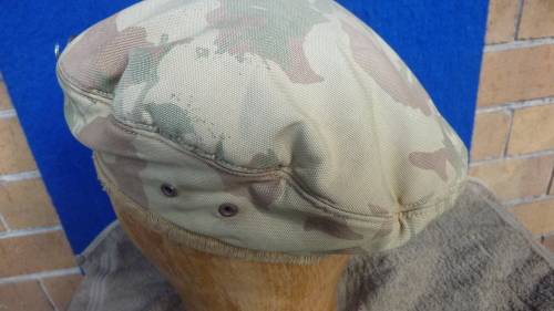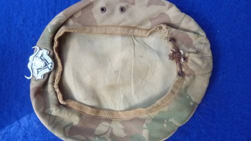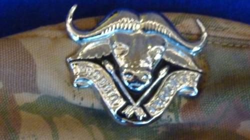 UP FOR AUCTION IS A 32 BATTALION CAMO BERET WITH BADGE..